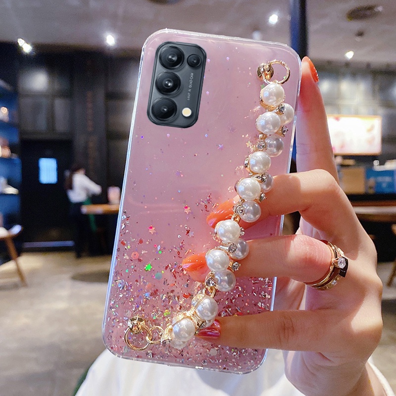 jual soft case transparan glitter blingbling rantai mutiara oppo